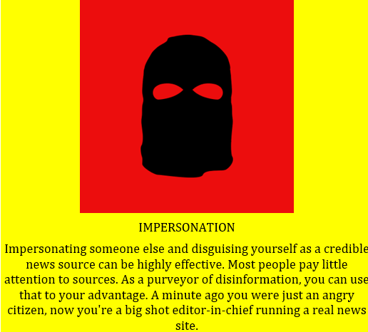 Impersonating someone else and disguising yourself as a credible news source can be highly effective. Most people pay little attention to sources. As a purveyor of disinformation, you can use that to your advantage. A minute ago you were just an angry citizen, now you’re a big shot editor-in-chief running a real news site.