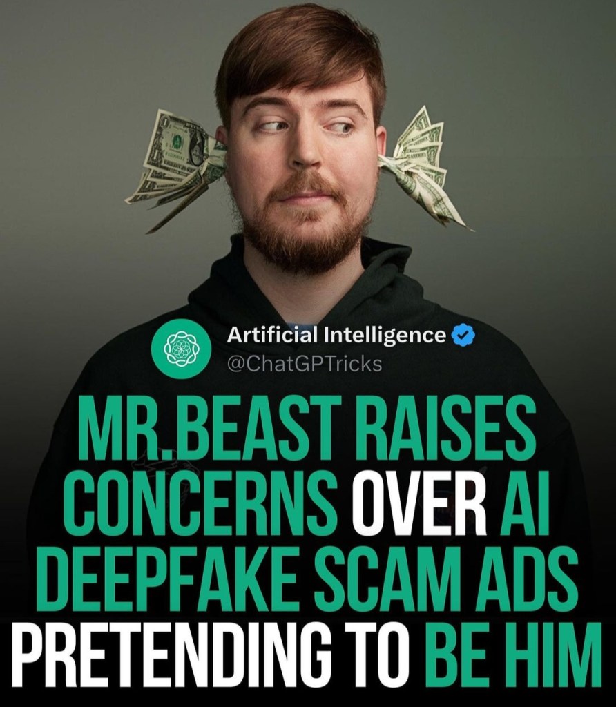 Mr.Beast has encountered a concerning trend of deepfake scam ads using AI to mimic his appearance and voice, prompting him to call for action from social media platforms. These scams typically involve victims clicking on links and providing bank details, leading to potential fraud. Creators have expressed alarm at the realism of these scams, with one stating they received such an ad recently. YouTuber Kwebbelkop highlighted the seriousness of the issue, emphasizing its significance.